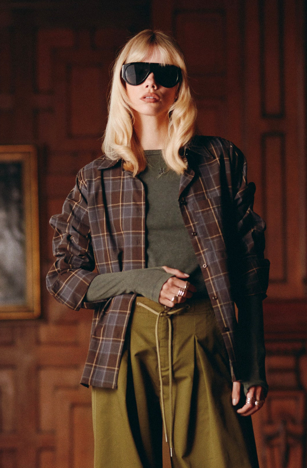 La camisa a cuadros que tendencia del invierno 2026. Confeccionada en 100% algodón, tiene esa textura suave pero con cuerpo que acompaña el movimiento y mantiene la estructura del look.