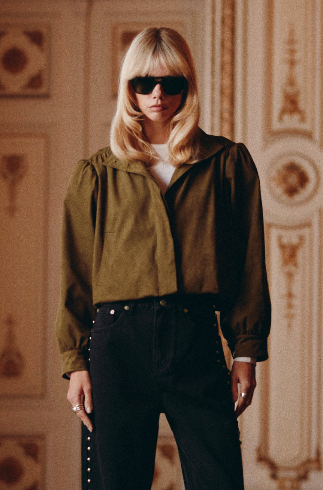 Chaqueta corta similar gamuza de calce regular confeccionada en tejido grueso y forrada en el interior para mayor estructura y confort. El diseño de efecto globo aporta volumen a la silueta, mientras que el cierre frontal mediante botones y los botones en los puños refuerzan su carácter. Presenta bolsillos frontales funcionales.