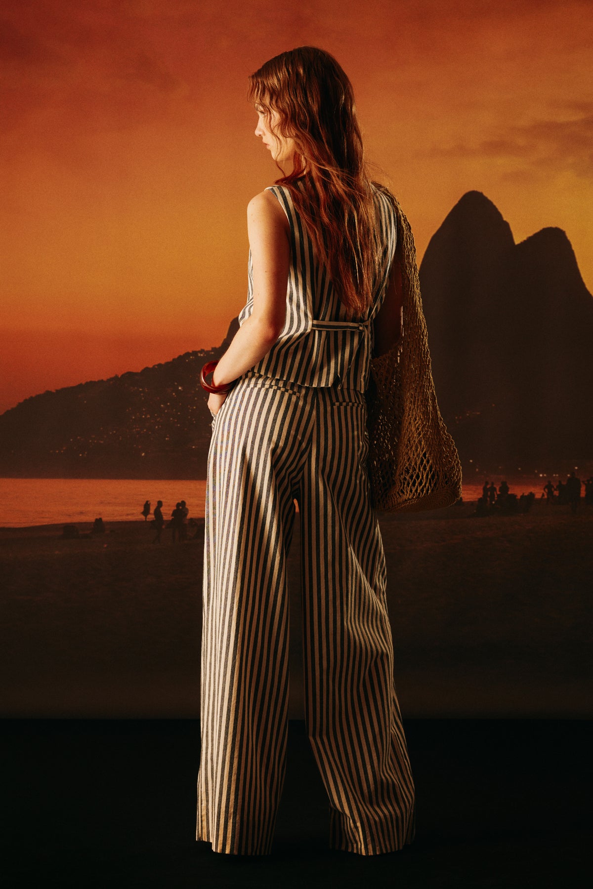 Pantalon sastrero de lino de calce regular y bota recta, con bolsillos laterales y cierre de cremallera frontal. La modelo esta usando talla 34 y mide 1.70 cm. Composicion: 55% LINEN 45% VISCOSE
