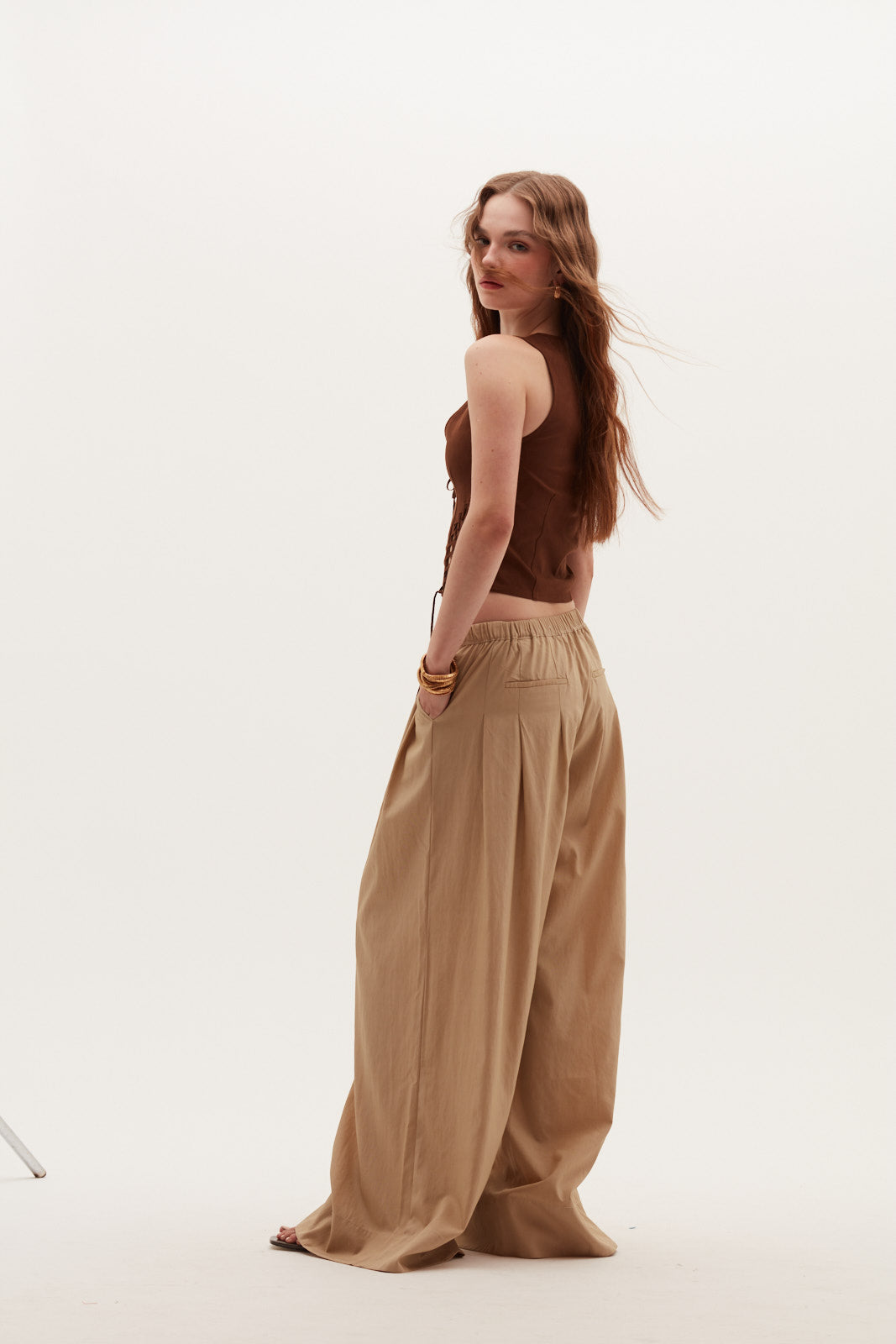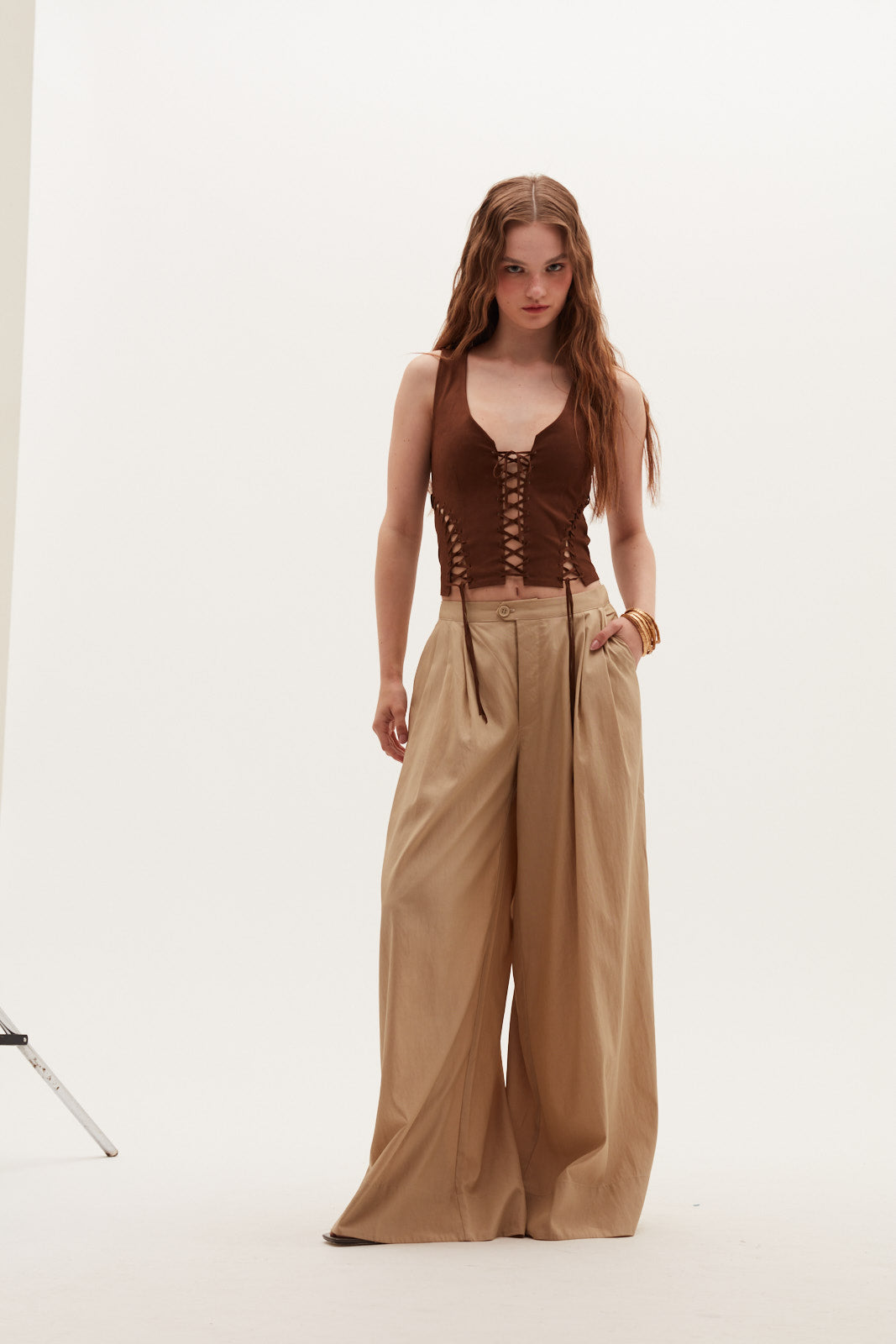 Este top de suede redefine el equilibrio entre suavidad, estructura y estilo. Su calce ajustado abraza la silueta con precisión, mientras su largo corto aporta un carácter moderno y favorecedor. El diseño incorpora amarras del mismo material, permitiendo ajustar la prenda a medida y realzar la figura con un acabado limpio y sofisticado.