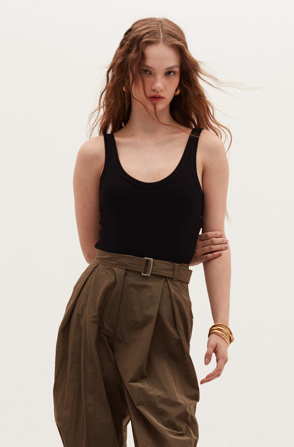 El pecho escotado aporta un toque femenino y estilizado, haciendo de este body una prenda versátil que funciona tanto como base para looks más elaborados como protagonista en outfits minimalistas. Su ajuste ceñido crea una silueta limpia y favorecedora, ideal para el uso diario o para elevar conjuntos con simplicidad.
